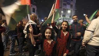 4 din 4 | După intrarea în vigoare a armistiţiului, palestinienii au sărbătorit evenimentul pe străzile din centrul oraşului Gaza, dar şi în oraşe din Cisiordania ocupată