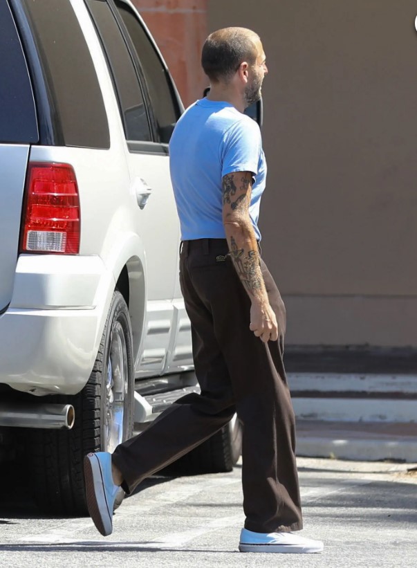 Tatuajele comediantului au ieșit în evidență dintr-un tricou, iar părul creț caracteristic lui era tuns scurt. De asemenea, el a îmbrăcat pantaloni maro ciocolatiu și adidași albi pentru ieșirea sa.