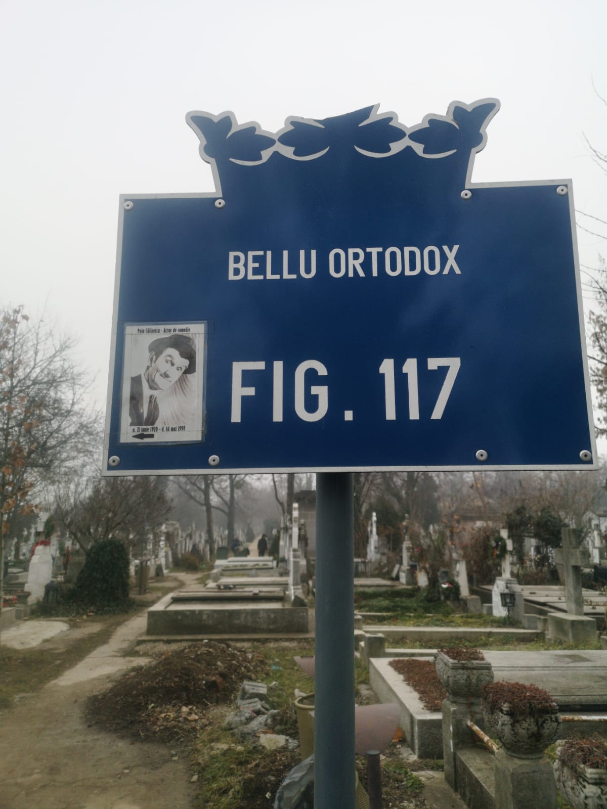 În urmă cu doi ani, un bucureștean s-a gândit că e păcat că Puiu Călinescu a fost aruncat în uitare și s-a gândit să-i ajute pe cei care vin la Bellu să ajungă mai ușor la el. A cerut voie de la administrație și a lipit două fotografii cu actorul pe indicatoarele de pe alei. Chiar și așa, acestea s-au îngălbenit de vreme și de ploi și cu greu îți poți da seama ce reprezintă.