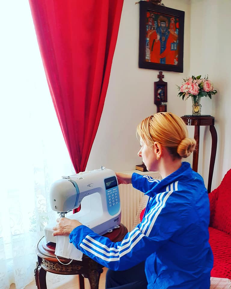 6 din 6 | Actriţa Ileana Olteanu face măşti de protecţie la mașina de cusut, în izolarea de la domiciliu: „În farmacii nu am găsit”