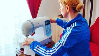 Actrița Ileana Olteanu face măşti de protecţie la mașina de cusut: "Mă reprofilez"