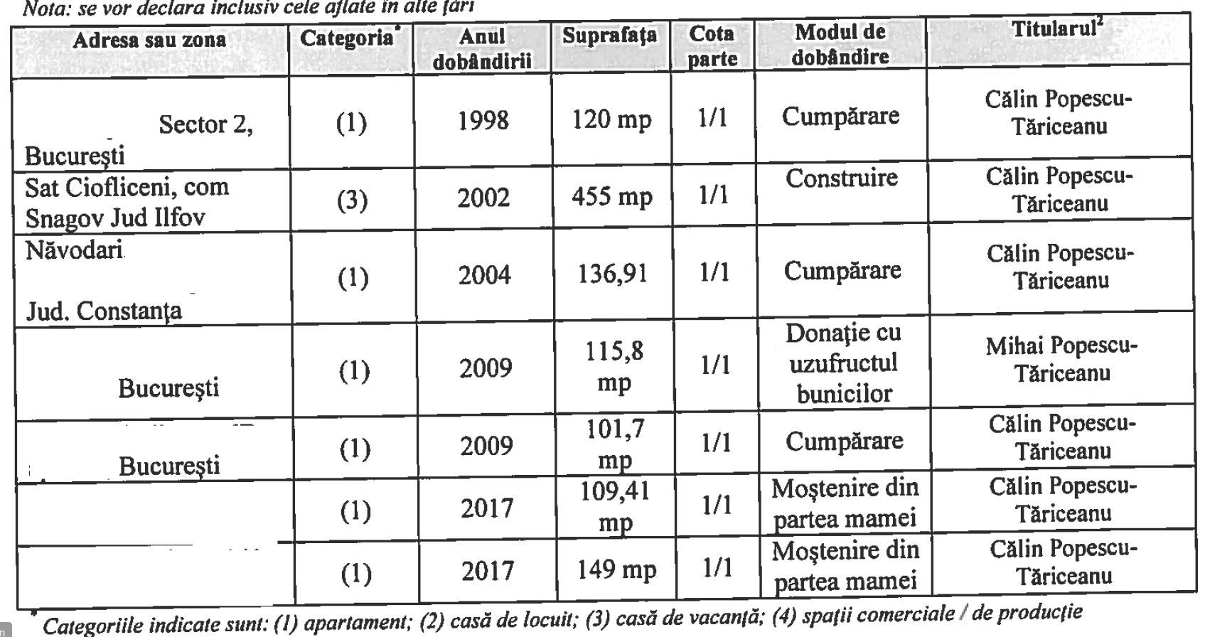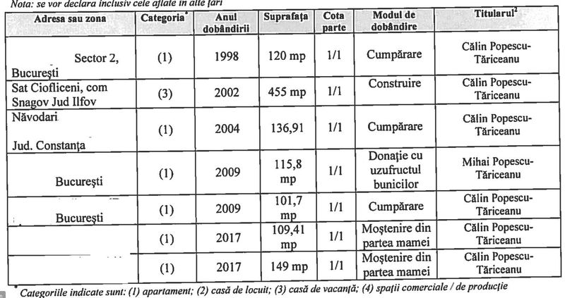 De altfel, Călin Popescu Tăriceanu a primit moştenire de la mama sa şi două apartamente, dar şi bani. Conform declaraţiei de avere, Tăriceanu a primit cadou de la mama, un apartament de 109 mp, şi un alt apartament, de 149 mp. Tăriceanu a mai primit moştenire de la mama sa 5.537 de lei şi 1871 de euro.