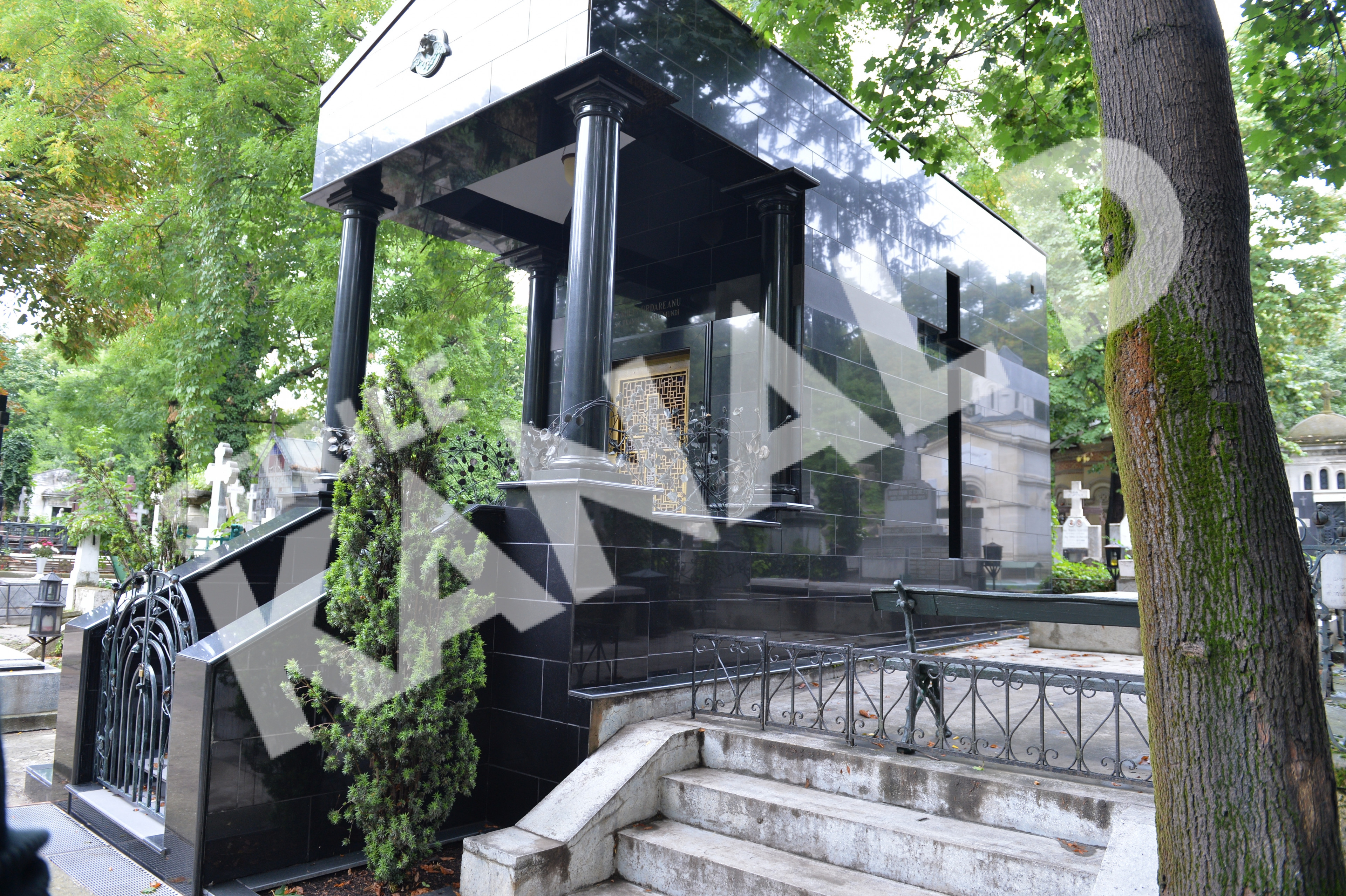 Cavoul propriu-zis este impresionant din afara. Cu o constructie realizata din marmura neagra si o poarta din fier forjat, monumentul face nota discordanta cu celelalte statui vechi din „muzeul” de la cimitirul Bellu. Aflam de pe cladire ca a fost ridicata in 2003, iar tinand cont de calitatea materialelor care s-au folosit, suma de 100.000