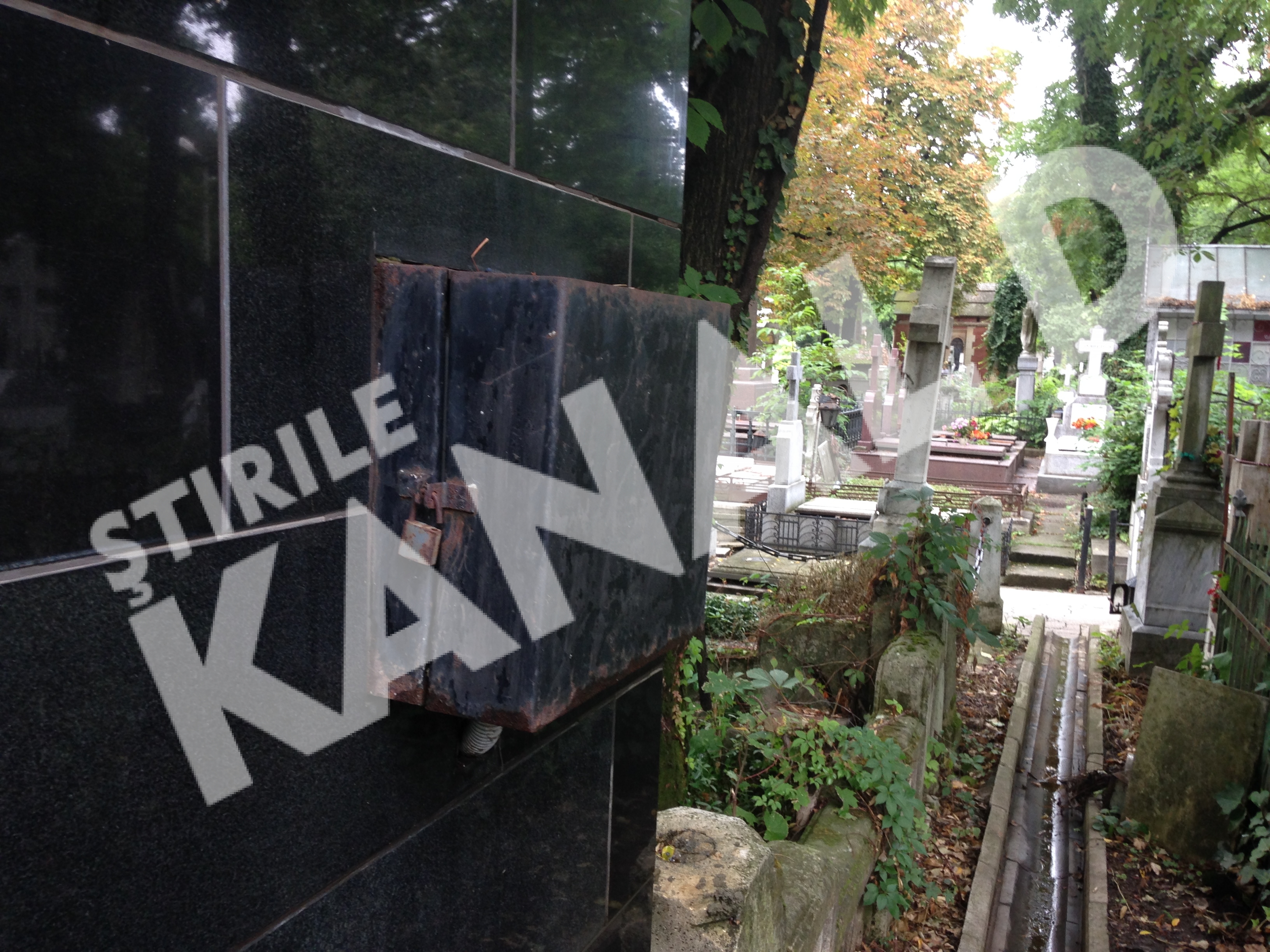 Acesta transmite informatia catre incuietoare si o declanseaza. In partea opusa, in stanga scarilor se poate vedea o „aerisire”. Oamenii de aici spun ca inauntru este un fel de ventilator care aduce aerul de afara si-l baga inauntru, deci nu e chiar aer conditionat. In spatele cladirii, se poate gasi si un tablou electric in toata regula, care, dupa cat de ruginit este, pare sa nu mai fi fost folosit de mult. Monumentul a fost construit in urma cu 13 aniOamenii care au grija de cimitir sustin ca inauntru chiar se afla un lift. Ei spun ca, atunci cand a fost construit cavoul, s-a lucrat cateva saptamani doar la saparea gropii. „Da, am auzit si noi ca exista un lift. Nu l-am vazut cu ochii mei, pentru ca nu am intrat niciodata, insa sunt baieti care au lucrat la groapa si au vazut”, ne-a povestit un angajat al cimitirului.