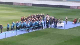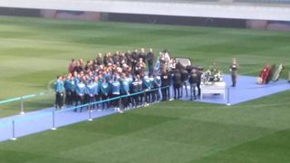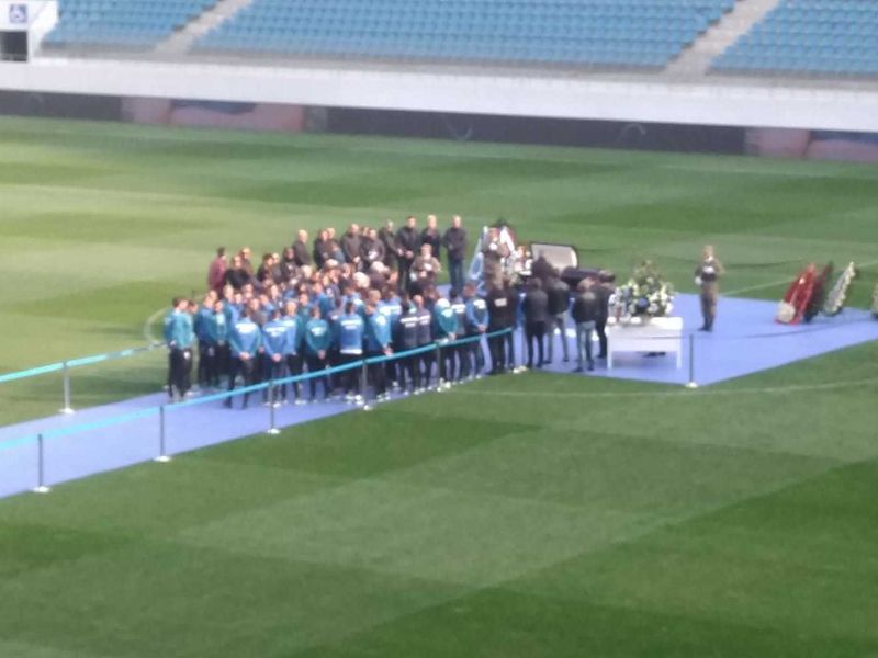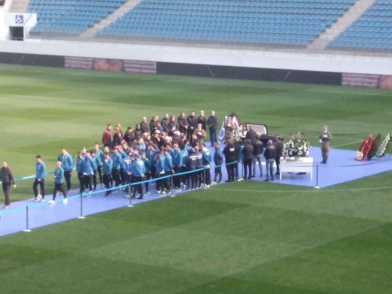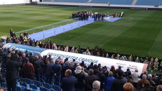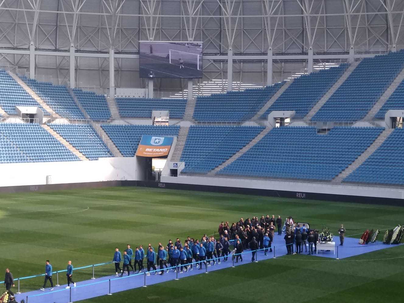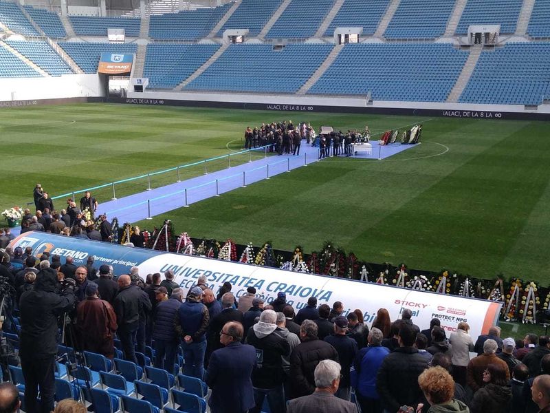 Puţin înainte de ora 11.00, jucătorii Craiovei au venit să-i prezinte un omagiu.Update, ora 10:20: Sicriul a fost depus. A fost adus de soldaţi. Unui membru al familiei Balaci i s-a făcut rău şi primeşte chiar acum îngrijri medicale pe banca de rezerve. De asemenea, Dănuţ Lupu şi-a făcut şi el apariţia: "A fost o plăcere să învăţ de la el. A jucat fotbalul doar cu zâmbetul pe buze", a spus la TV Digi Sport.