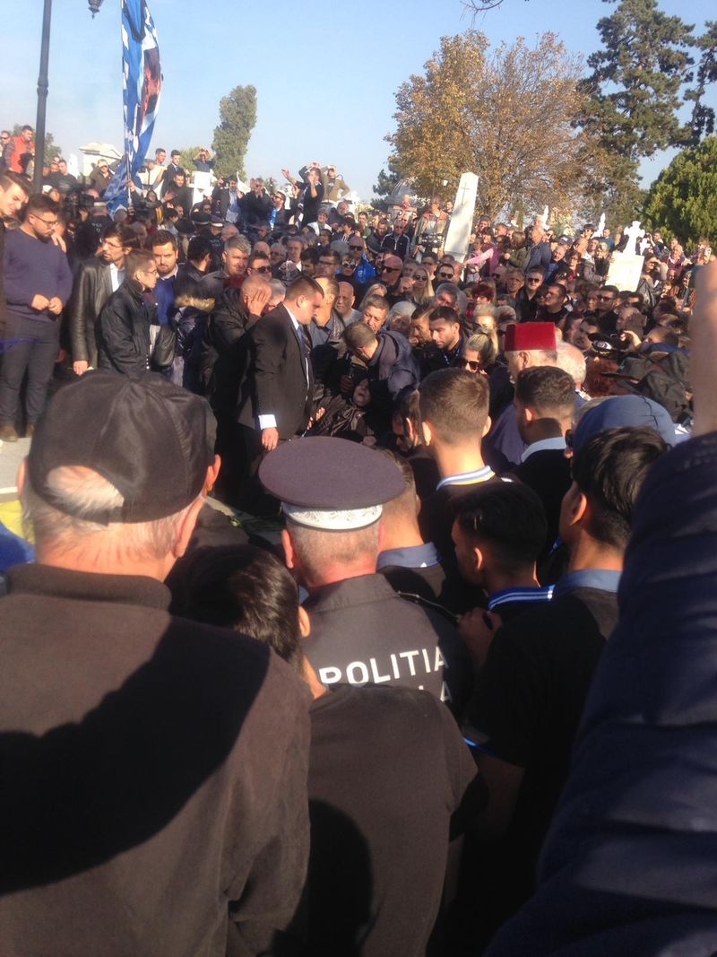 Update 14:58 :În jurul cimitirului, mulţimea strânsă a blocat strada. Poliţiştii au oprit cirulaţia în zonă. Se aşteaptă sosirea cortegiului funerar