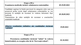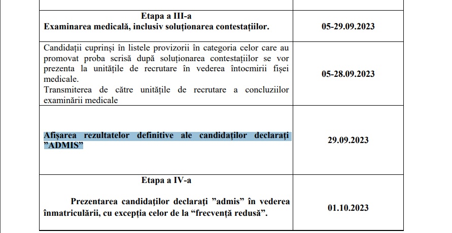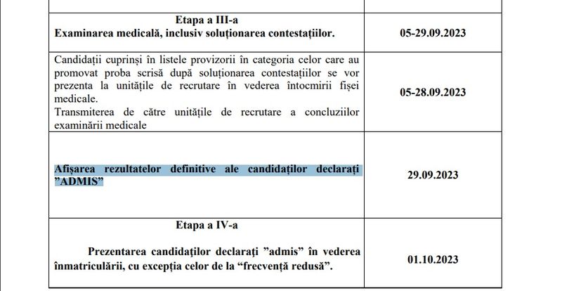 Afișarea rezultatelor definitive ale candidaților declarați ”ADMIS” este programată pentru data de 29 septembrie 2023.