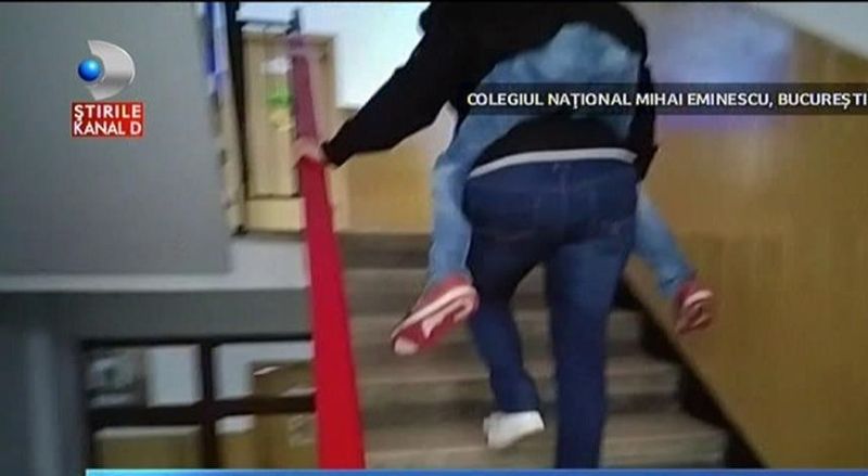 Nu are cum sa urce scarile, la toaleta nu poate merge singur, primeste absente chiar si la sport desi este intr-un scaun cu rotile. "Primeste absenta nemotivata chiar si la ora de sport ca nu e scutit!...", spune mama baiatului.