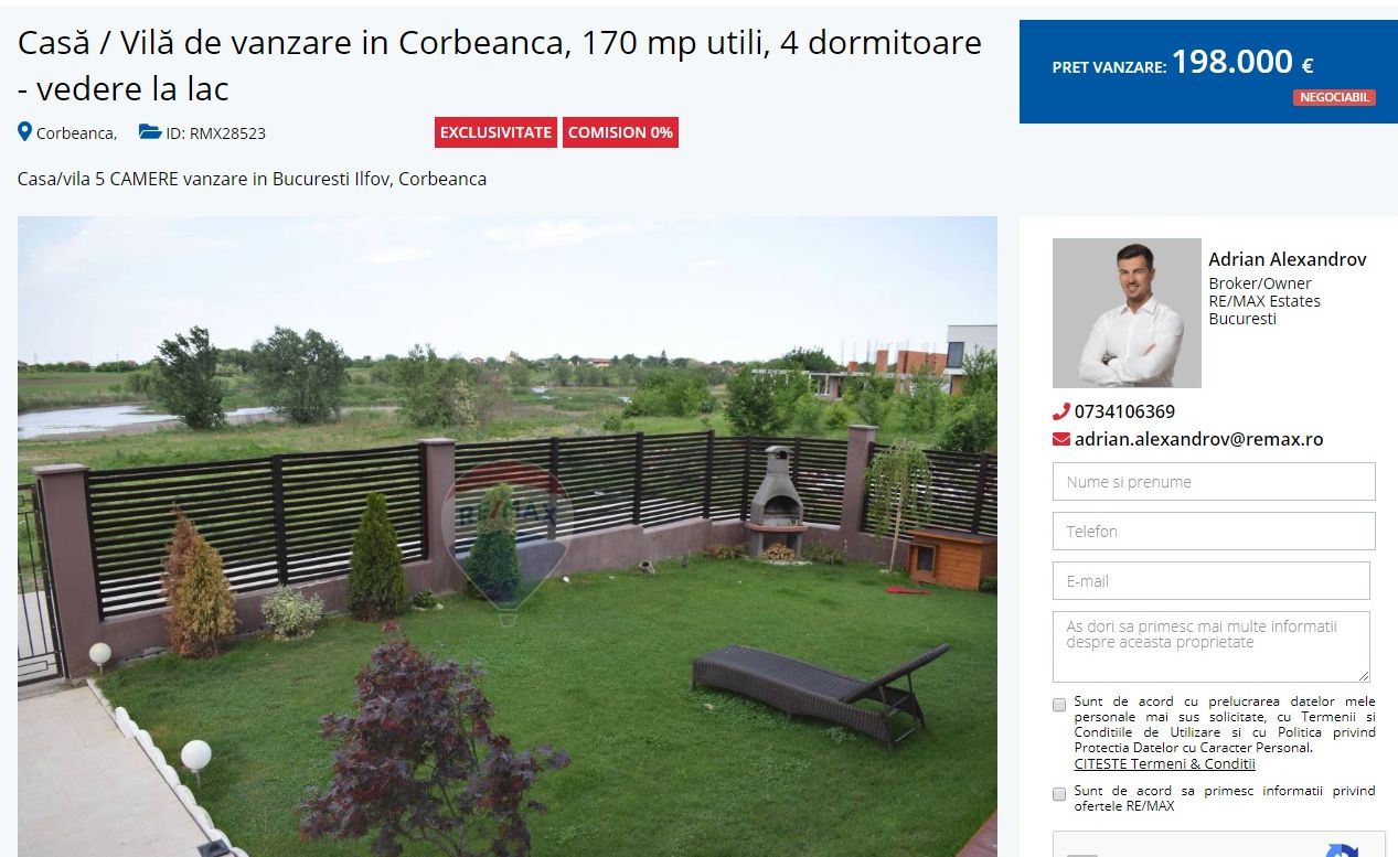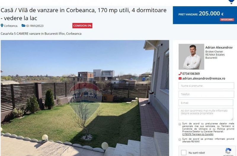 E clar că Adrian Alexandrov îşi vinde la reducere vila din Corbeanca. Acum două săptămâni, Adrian Alexandrov şi-a scos la vânzare vila din Corbeanca. Logodnicul Elenei Udrea şi-a cumpărat casa acum câţiva ani, dar acum a luat decizia să o vândă pentru 205.000 de euro, negociabil, aşa cum se arată în anunţul postat de Alexandrov chiar pe site-ul agenţiei sale imobiliare.( vezi cum s-au ruinat afacerile Elenei Udrea)