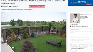S-a aflat că Adrian Alexandrov îşi vinde la reducere vila din Corbeanca. Acum, pe site-ul agenţiei sale de imobiliare, Alexandrov cere 198.000 de euro, negociabil, adică a făcut o reducere de 7.000 de euro faţă de preţul iniţial. “Vila este utilată, mobilată şi dispune de finisaje de lux. La parterul vilei găsim un living generos, o bucătărie open-space dar care se poate închide dacă proprietarului îi place să îşi petreacă timpul în bucătarie, un dormitor sau birou, o baie de servici dar şi o terasă de 21 mp care poate fi închisă iarna şi deschisa vara. La etajul 1 regăsim 3 dormitoare deservite cu câte o baie fiecare, dormitorul matrimonial având un balcon şi semineu. Vila este amplasată într-un cartier semi-rezidenţial în care sunt construite doar 10 case. Parcarea dispune de 2 locuri de parcare în curte", este descrisă proprietatea lui Alexandrov.