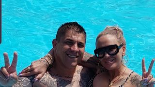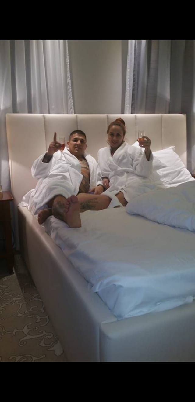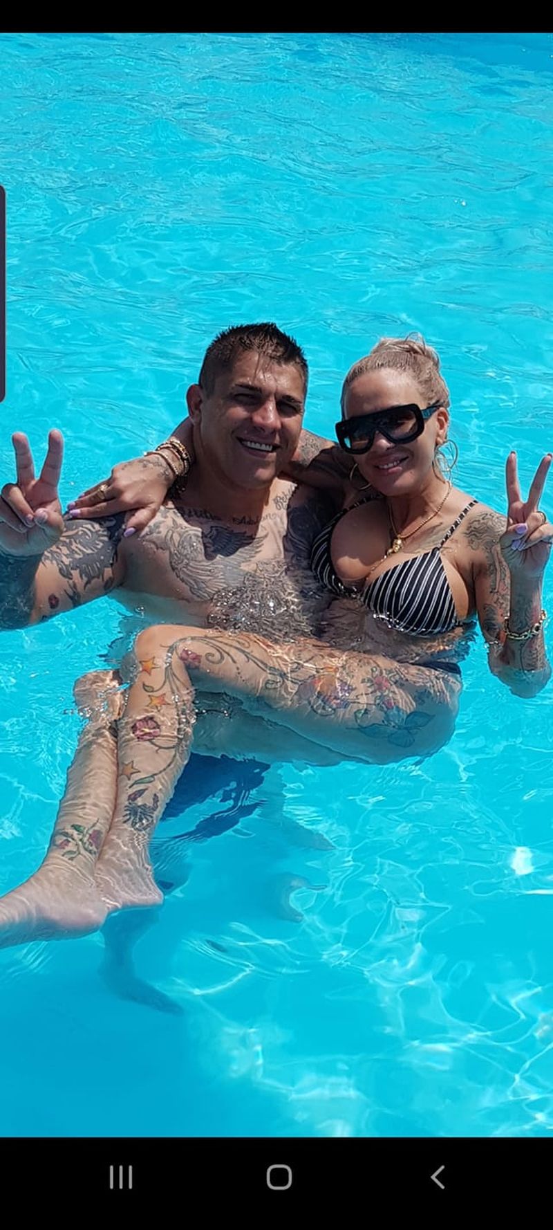 Foarte mândru de Ramona, pe care o alintă ”Diamantul roz”, interlopul a postat câteva fotografii cu ei doi în camera de hotel, în pat, dar și o imagine de la piscină, acolo unde partenera lui a făcut senzație cu fizicul ei, dar și cu tatuajele din dotare.