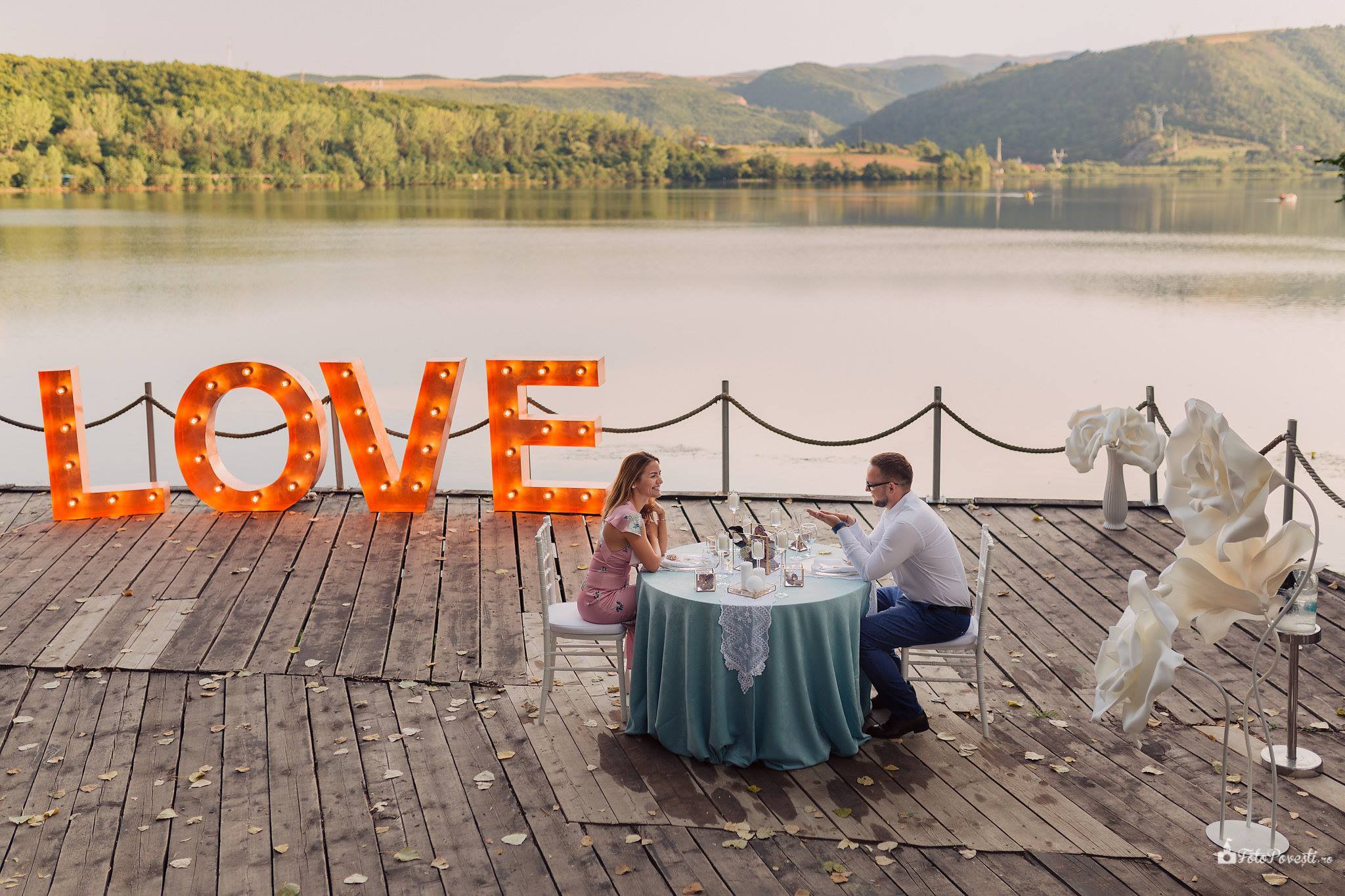 Afaceristul Sergiu Biris si sotia sa, Carmen, au sarbatorit recent aniversarea casatoriei lor, evenimentul fiind marcat printr-o cina romantica pe pontonul unui restaurant aflat pe malul unui lac. Cei doi soti au inchiriat doar pentru ei zona, locul fiind ales pentru realizarea unui pictorial artistic. Cel mai romantic gest al lui Sergiu a fost sa comande un panou din becuri portocalii care au format cuvantul „LOVE”.