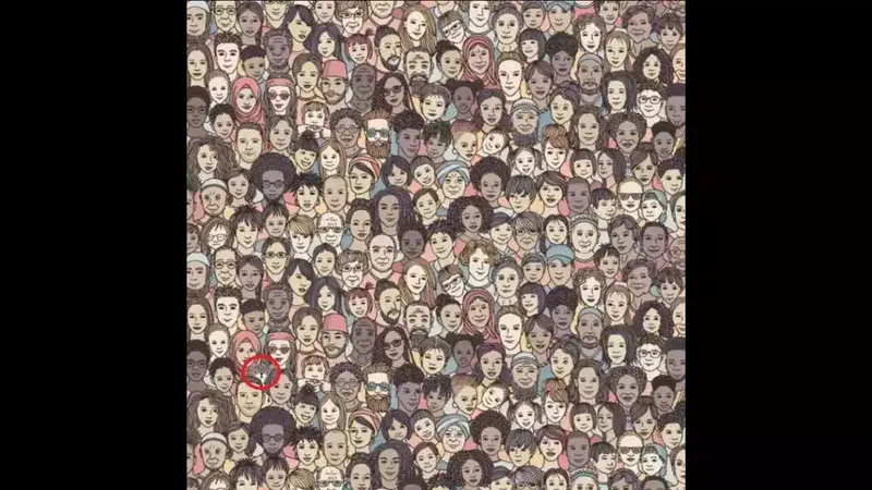 Ai doar 7 secunde să găsești pisica ascunsă în marea de capete de oameni. Mulțimea de figuri de toate rasele ascunde și o mică felină, doar capul ei, de fapt.