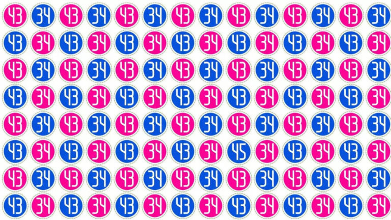 De data aceasta, puzzle-ul cognitiv te prpvoacă să găsești numărul ascuns „45” într-o mare de „43” și „34”. Deși poate părea o sarcină ușoară la prima vedere, aranjarea inteligentă a culorilor și modelelor o face mult mai dificilă decât se aștepta.