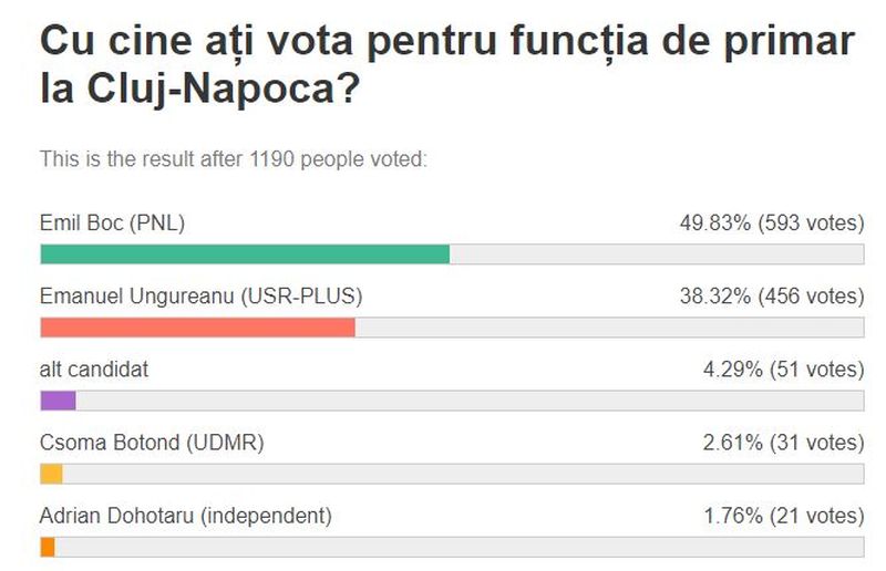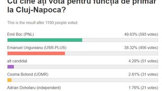Rezultatele alegerilor locale pentru Cluj-Napoca, în exclusivitate, chiar aici. Noi vă oferim situația în timp real a procentelor de vot.