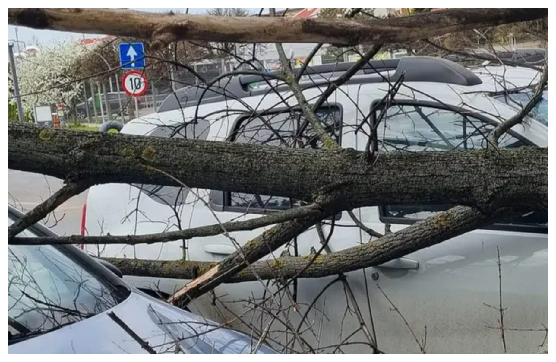 În București, rafalele au doborât numeroși copaci în București iar unii au căzut chiar pe mașinile parcate.