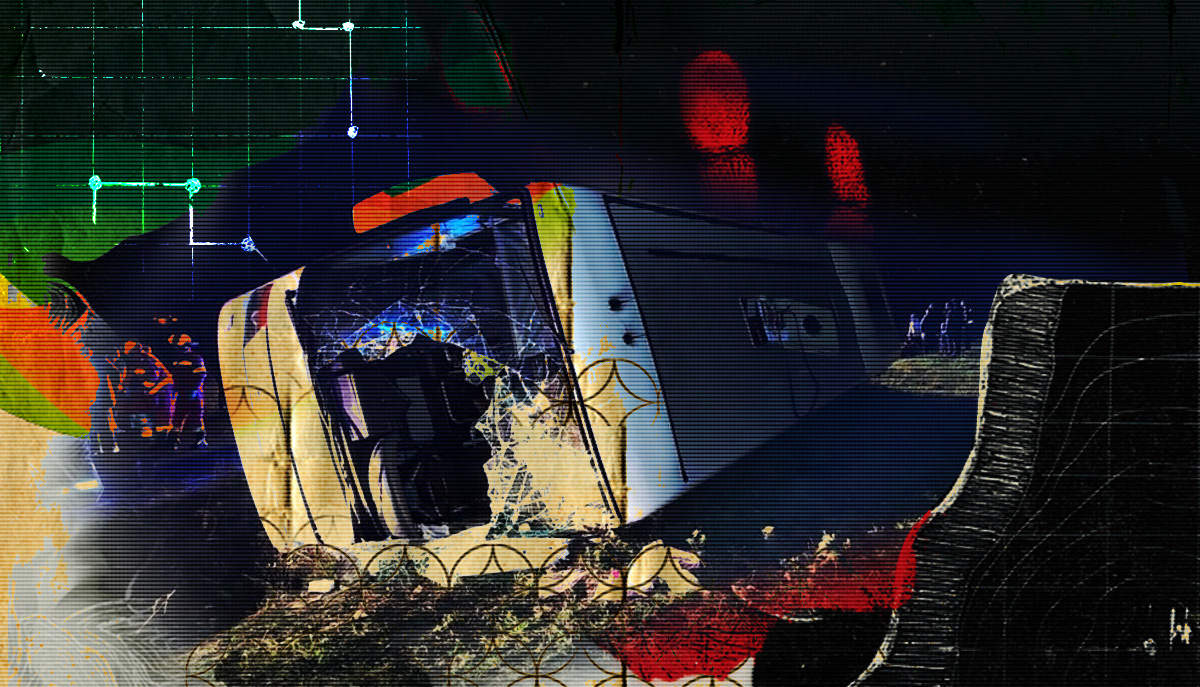Carosabilul era umed de la ploaie. Bărbatul a pierdut controlul volanului iar autocarul s-a răsturnat într-un şant. Oamenii au ieşit cu toţii afară, pe rând, prin parbrizul făcut ţăndări. Unii din ei au sunat la 112.