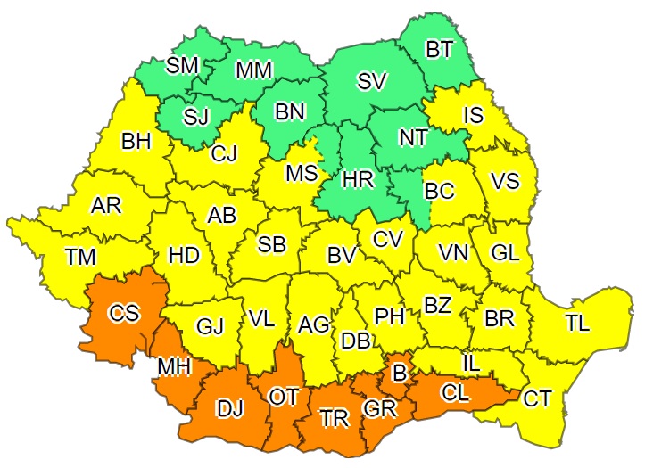 Administrația Națională de Meteorologie (ANM) a emis sâmbătă dimineața noi avertizări cod galben și cod portocaliu- atât pentru temperaturile de foc care se extind în toată țara, cât și pentru fenomene de instabilitate termică.