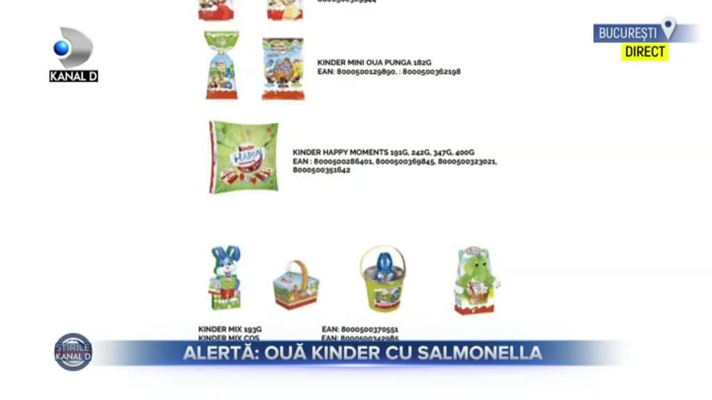 Stirea "Alertă - ouă Kinder cu Salmonella" difuzata in cadrul Stirilor KANAL D din 7 04 2022