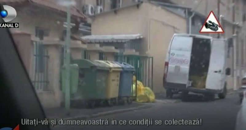 La Spitalul Victor Babes din Capitala, angajatii firmei de colectare sunt vizibil deranjati de cetateanul care ii filmeaza in timp ce scot deseurile din pubele si le arunca pur si simplu in masina, lucru total interzis!.
