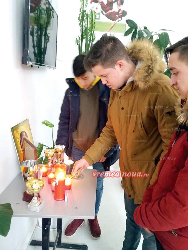 La liceul cu Program Sportiv, acolo unde acesta invãta, colegii i-au amenajat un adevãrat altar unde au aprins lumanãri si s-au rugat pentru sufletul lui.