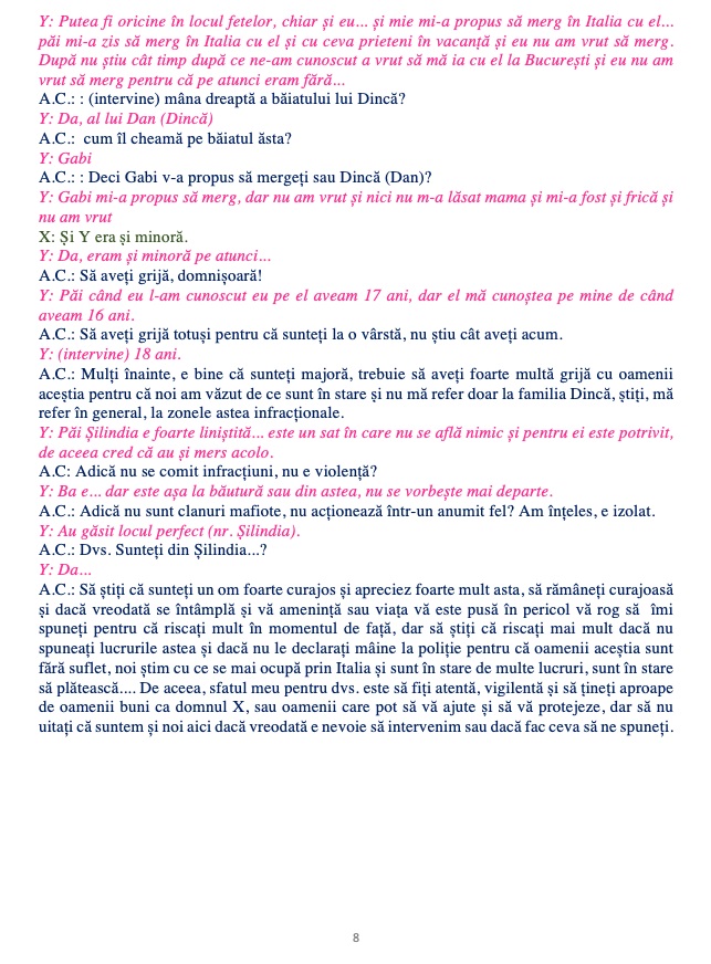 Fac precizarea că, încă de la început, am încurajat fata să meargă să depună plângere la POLIȚIE și DIICOT, publicarea stenogramei realizându-se după audierea martorei de către DIICOT.
