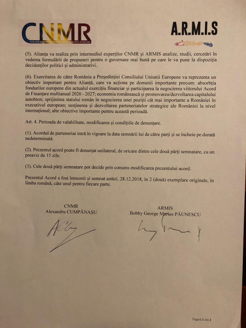 Astăzi, 28 Decembrie 2018, s-au pus bazele Alianţei dintre Coaliţia Naţională pentru Modernizarea României şi ARMIS prin încheierea unui Acord de Colaborare istoric pentru societatea românească.