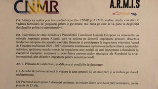 5. Alianţa va realiza prin intermediul experţilor CNMR şi ARMIS analize, studii, cercetări în vederea fundamentarii de propuneri pentru o guvernare mai bună pe care le va pune la dispoziţia decidentilor politici şi administrativi.