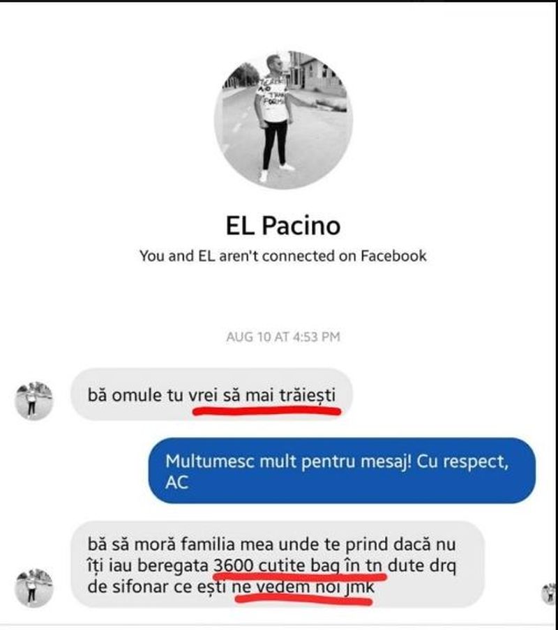Alexandru Cumpănașu a fost amenințat cu moartea, postând meajul pe care l-a primit.