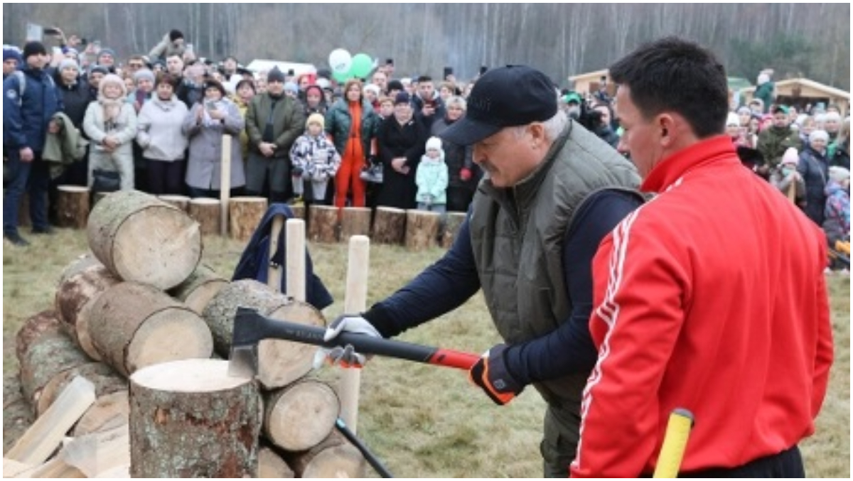 Liderul de la Minsk a făcut promisiun ea în timpul vizitei sale la campionatul de despicare a lemnului, scrie Kyiv Post.