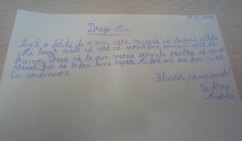 Alin Andronic a fost impresionat de gestul fetiței și le-a împărtășit și prietenilor săi virtuali acest lucru. El a postat scrisoarea în întregime pe contul său de socializare, iar like-urile au curs minute în șir.