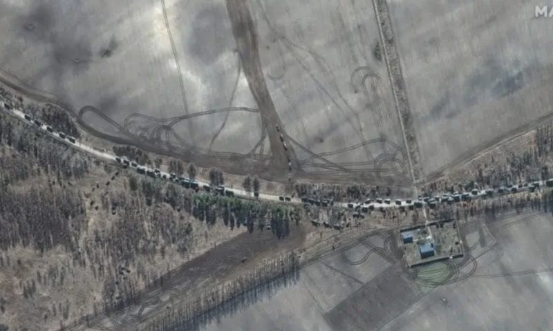 El s-a referit la principala coloană rusă de sute de vehicule care ''nu s-a putut apropia mai mult de aeroportul Gostomel'', la aproximativ 20 de kilometri de Kiev, precum şi la o altă linie care este ''blocată la Cernihiv'', la 150 km de capitală.