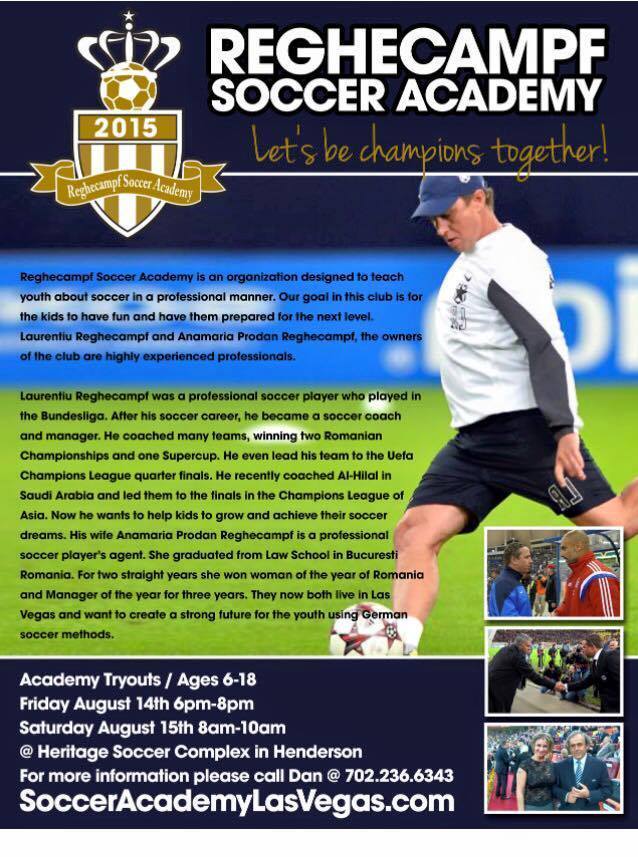 Sotii Reghecampf si-au deschis academia de fotbal din SUA in vara lui 2015.