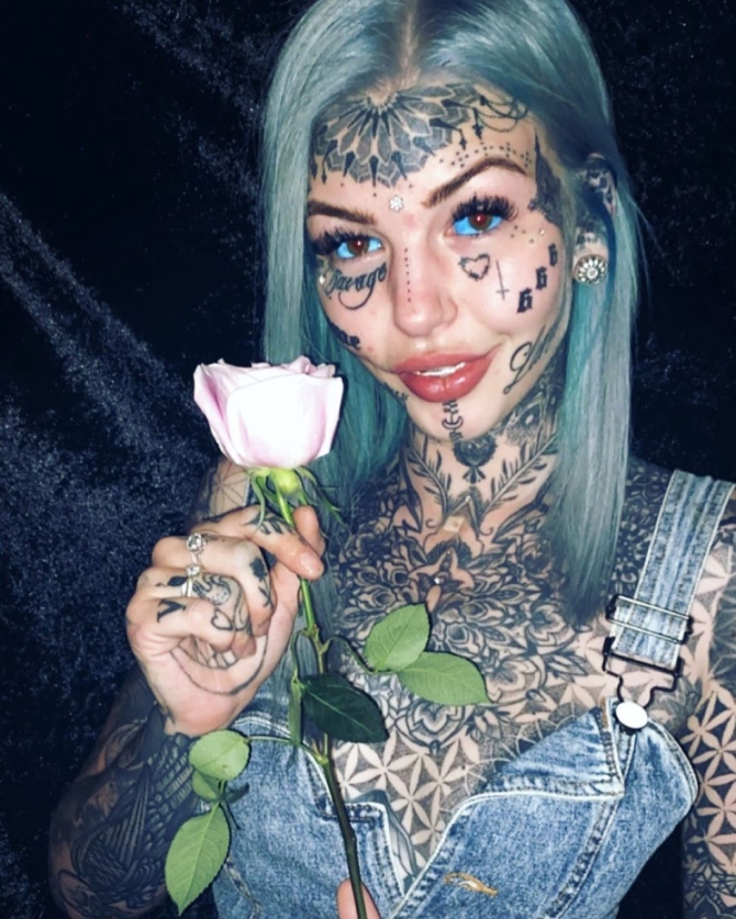 O tânără de 28 de ani care și-a umplut aproape tot corpul cu tatuaje și simbolurile satanice este încrezătoare că își poate afla adevărata identitate dacă continuă să acopere toate spațiile goale rămase pe trup. Femeia a fost la un pas să orbească definitiv când și-a colorat în albastru albul ochilor.