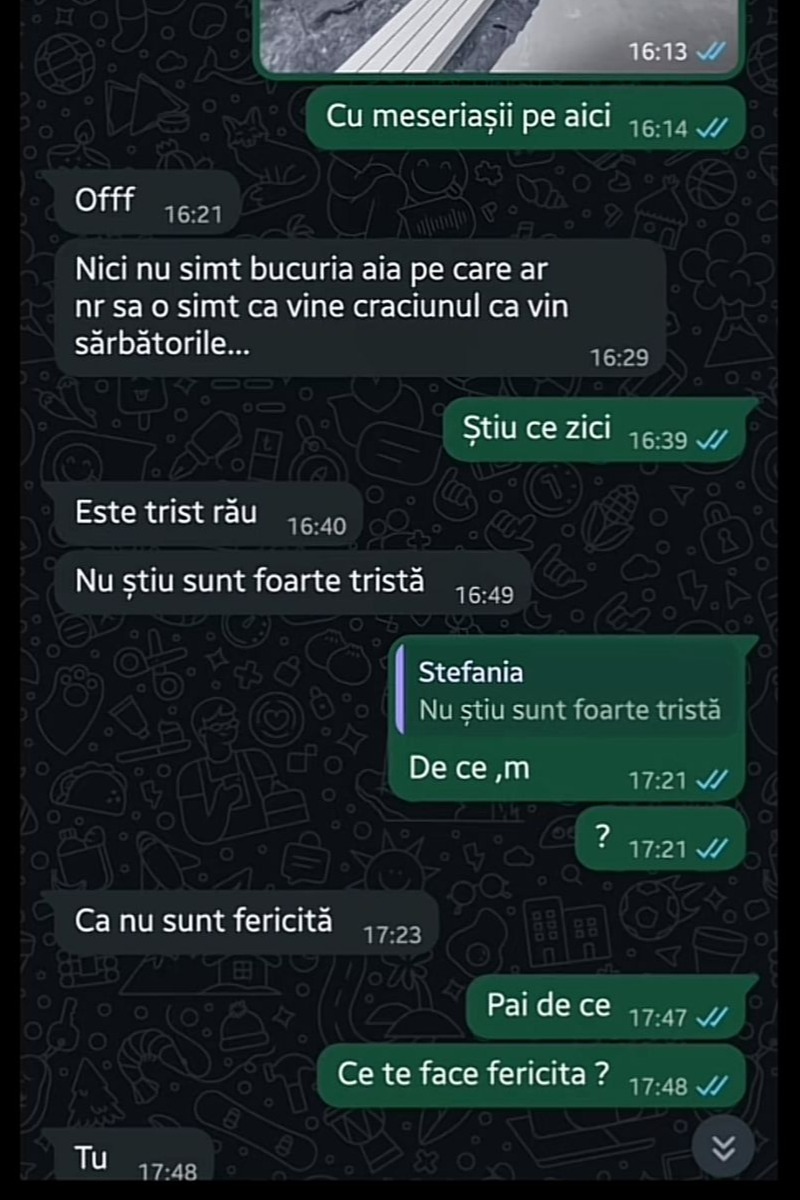 Ultima oară când m-a căutat Ștefi mi-a cerut ajutorul, iar eu am venit dintr-o situație asemănătoare ei, și eu la rândul meu distrus energetic și acum trag să-mi revin, nici acum nu sunt bine deloc, dar îi mulțumesc lui Dumnezeu că am pus stop la timp și n-am lăsat situația să denatureze și să mă distrugă și să nu mai am nimic. Uitați, săraca, cât a crezut în mine și cât de mult bine i-am făcut în ăștia doi ani. Ultima oară când m-a căutat și n-am știut ce să mai zic. Abia știu să ma ajut pe mine în situația asta, trag de mine să îmi revin și eu”, a spus Daniel Balaș, pe rețelele de socializare.
