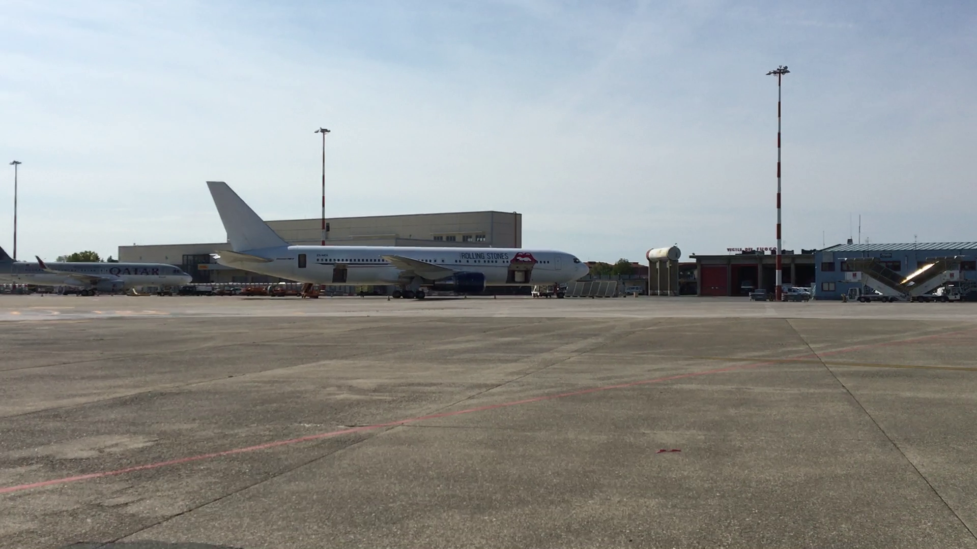 3 din 3 | Am surprins aeronava trupei Rolling Stones la Pisa. Avionul e usor de recunoscut dupa celebrul logo "Hot Lips".