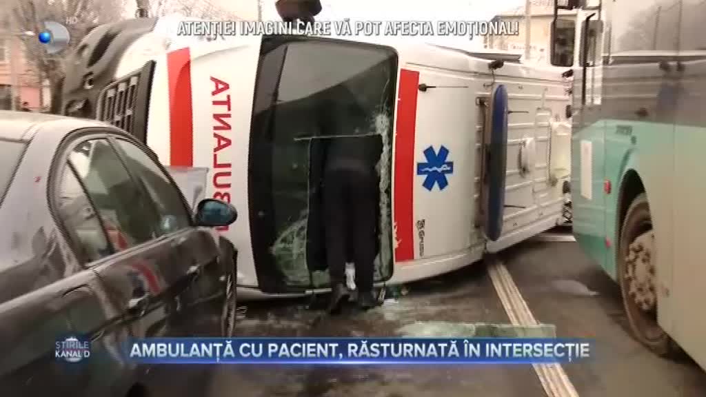 Stirea "Ambulanță cu pacient, răsturnată în intersecție" difuzata in cadrul Stirilor KANAL D din 23 12 2022