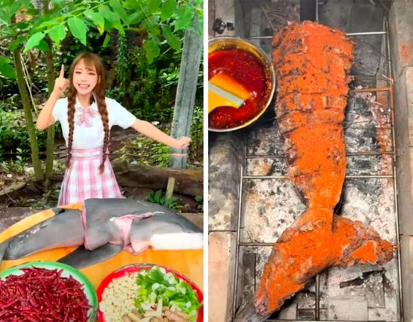 Tânără este cunoscută în mediul online, în China, dar de această dată s-a ales cu o amendă uriașă după ultima postare. Influencerița a gătit și mâncat un rechin alb, care este protejat prin lege.