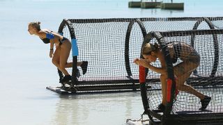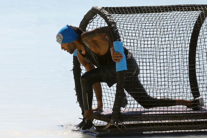Jocul de recompensa de aseara, in urma caruia Razboinicii au iesit invingatori si au primit prajituri, s-a desfasurat pe un traseu absolut spectaculos, care incepea pe mare, la 30 de metri de tarm, concurentii fiind nevoiti sa traverseze doua platforme uriase pe apa, cu obstacole mobile si fixe,