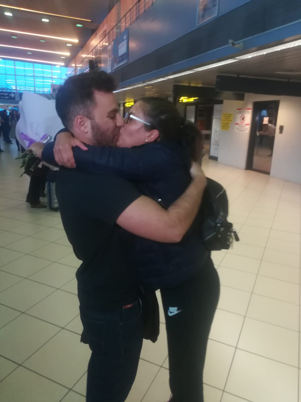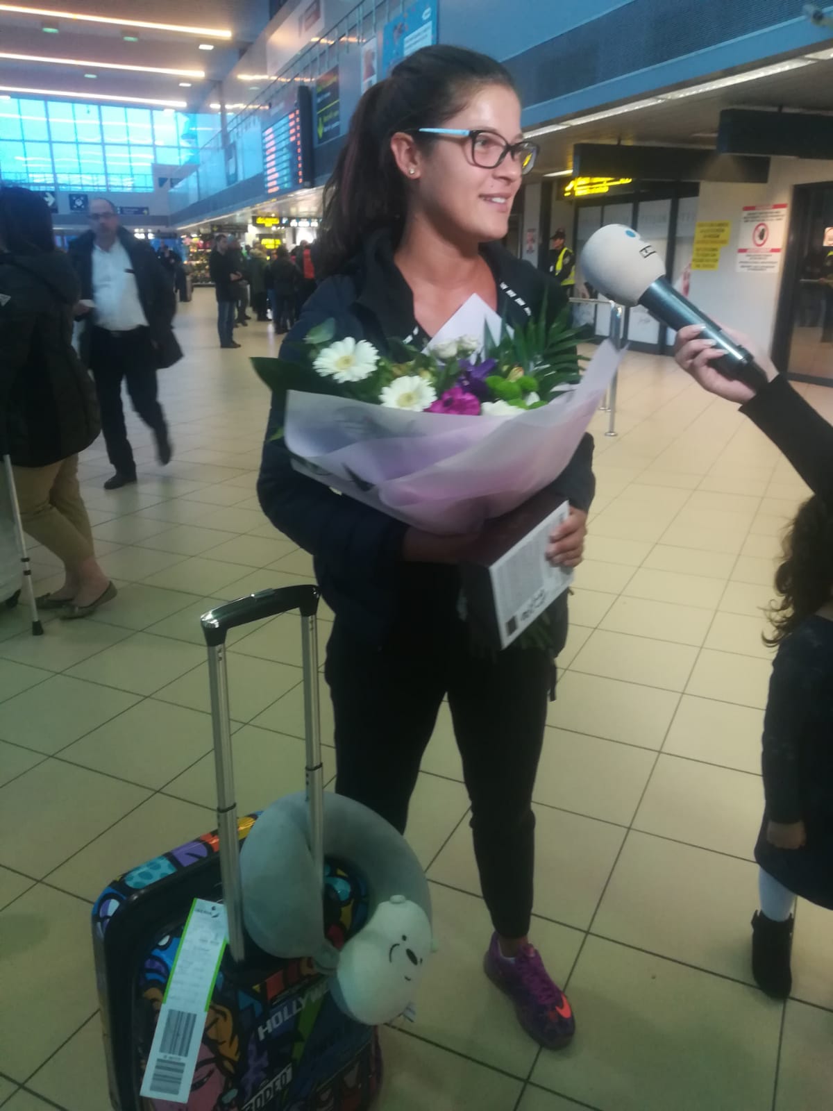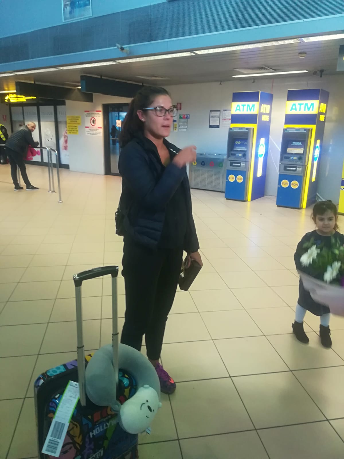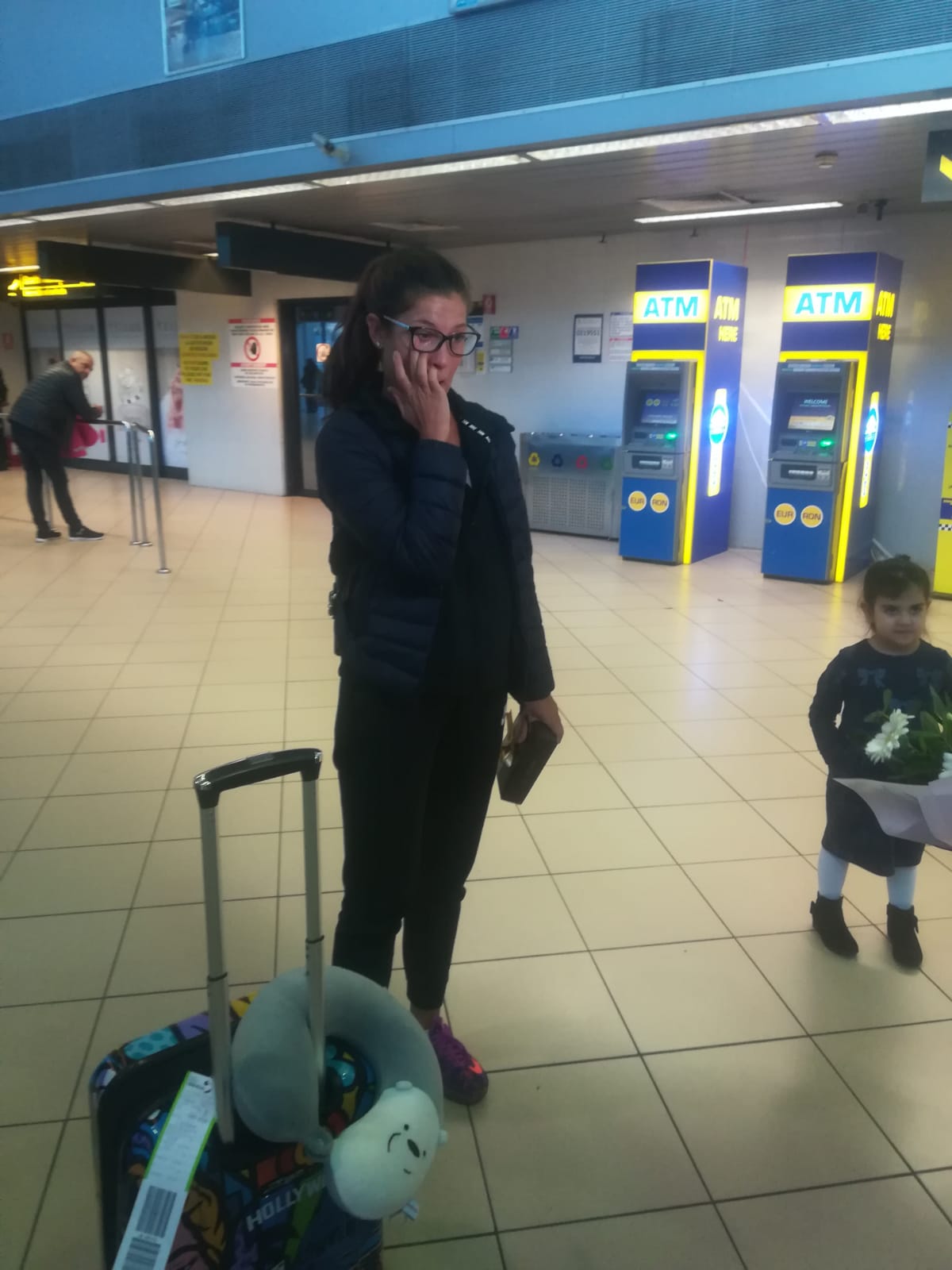 Când și-a văzut persoanele dragi, Ana Cazan nu și-a putut abține lacrimile, mai ales atunci când iubitul i-a dăruit un buchet de flori.