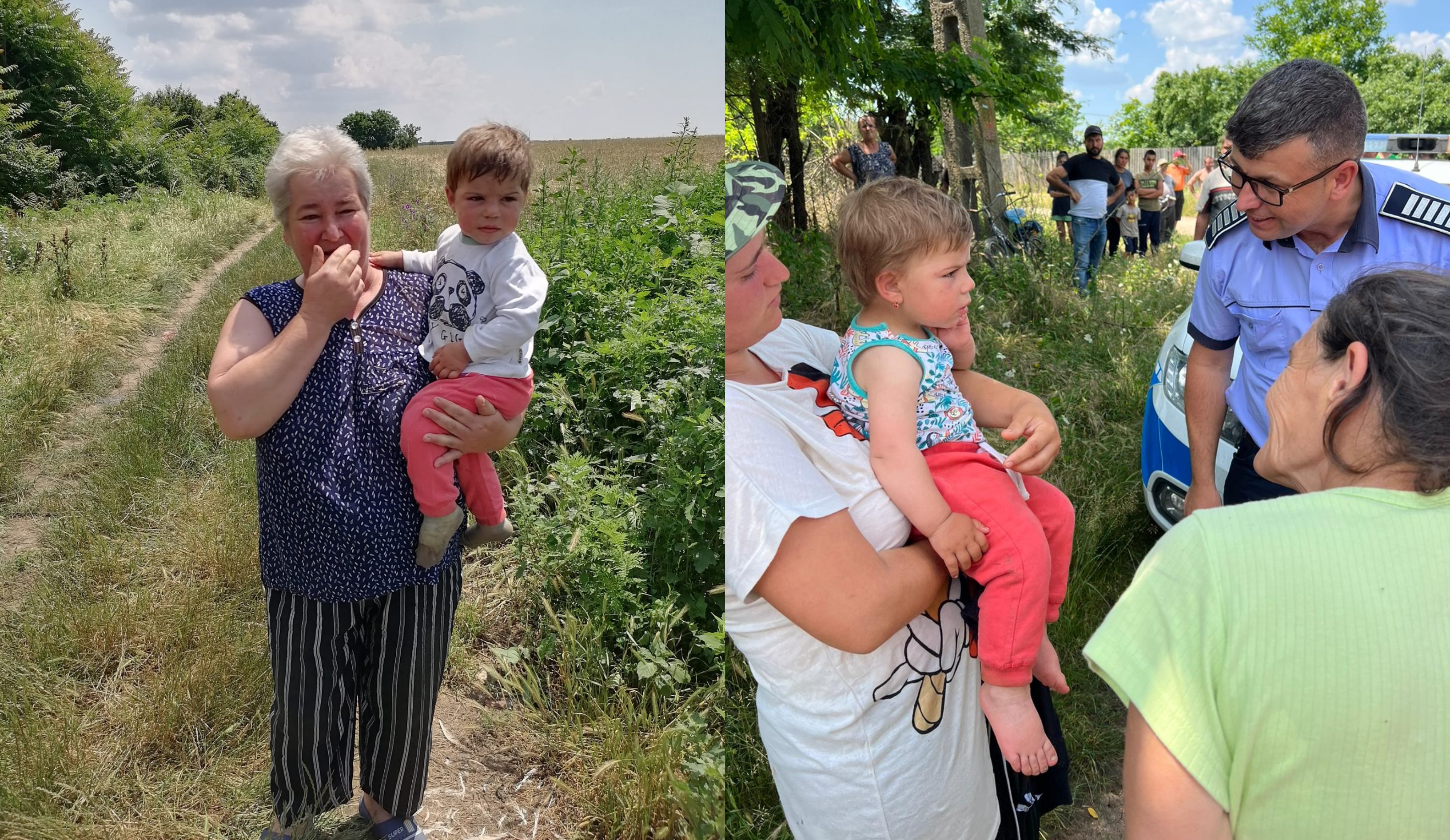 O fetiţă de doi ani din județul Dolj, dispărută de acasă, a fost găsită teafără într-un lan de grâu după o oră de căutări, fiind încredinţată familiei.