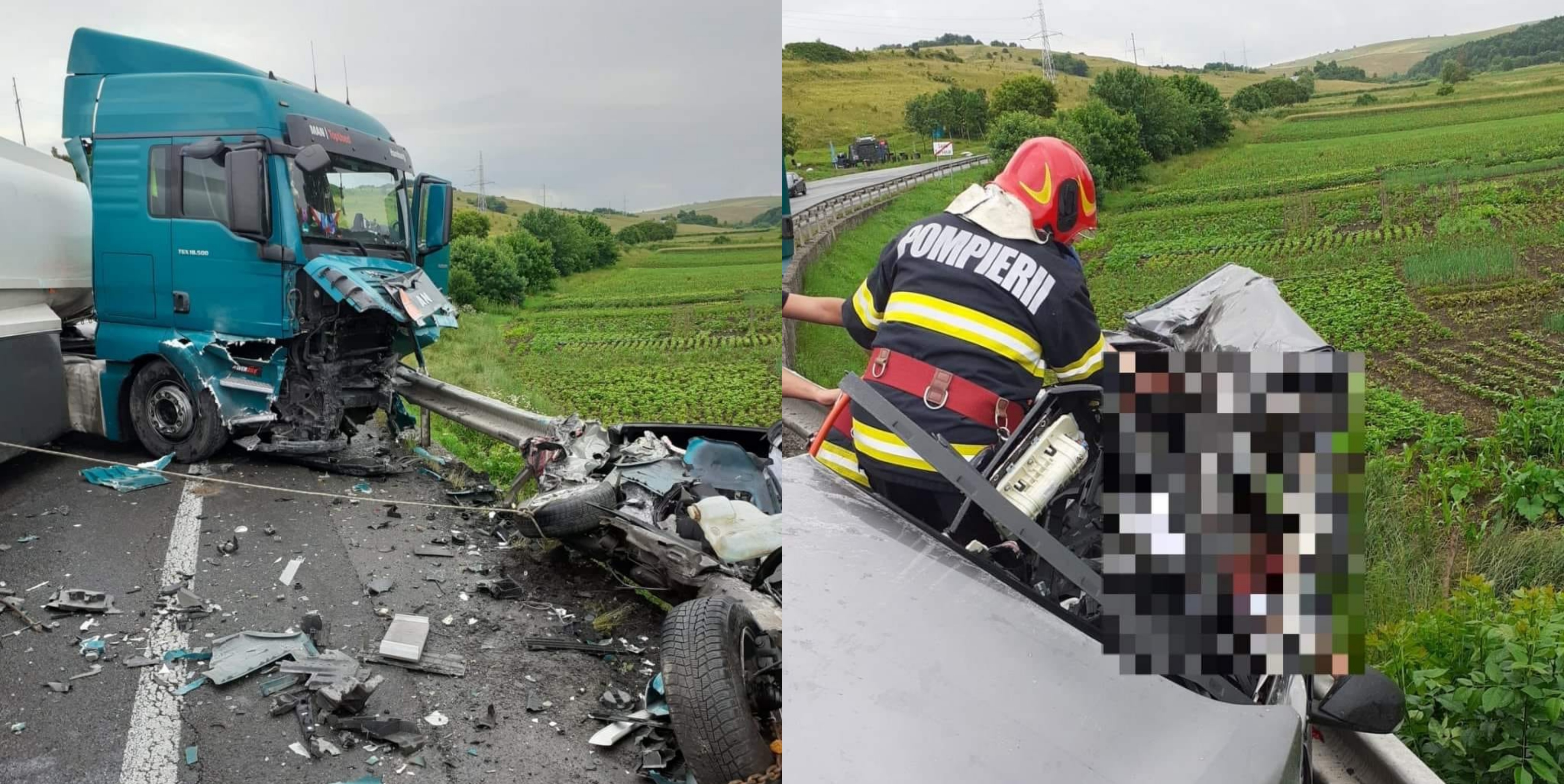 „Am auzit o bubuitură, am crezut că e o explozie de cauciuc. Soțu o fugit primul am fugit și eu și am atunci am văzut camionul cu cabina întoarsă peste și mașina", spun martorii.