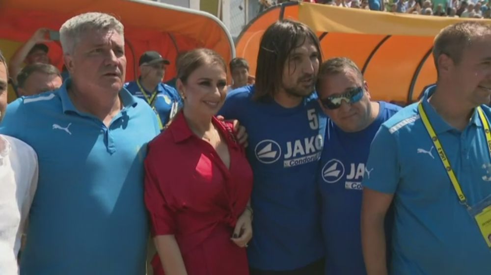 Suporterii prezenti la stadion au avut parte de o surpriza de proportii. Anamarian Prodan a urmarit din tribune meciul de promovare al Dunarii, iar la final a facut poze alaturi de fani si de Dan Alexa.