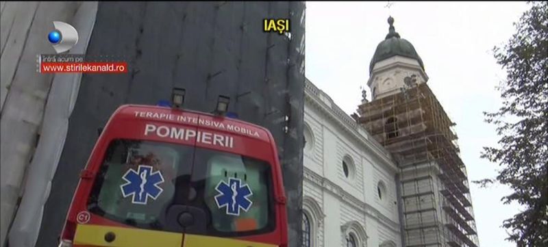 "A venit smurdul au edfectula manevre de resusciatre.. in cele din urma au declarat decesul, avea centura de protectie dar nu era agatat de structura metalica", a declarat Marian Timofte, purtator de cuvant al Mitropoliei Iasi.