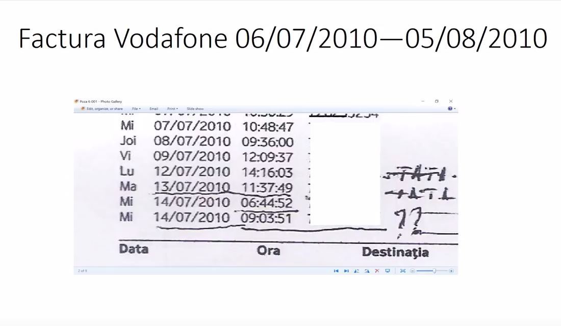 „La dosar nu exista factura Vodafone a telefonului Madalinei Manole. Eu am obtinut-o de la domnul Manole, dansul a obtinut-o dupa ce a cerut-o companiei de telefonie.