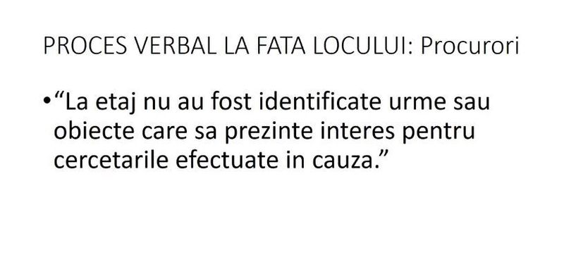 „In procesul verbal facut pe 14.07.2010, apare un pasaj al procurorilor care au spus ca „la etaj nu au fost identificate urme sau obiecte care sa prezinte interes pentru cercetarile efectuate in cauza”. In procesul verbal, procurorii au mentionat: cum au gasit victima, ca s-au facut fotografii judiciare, ca s-au ridicat urme biologice, amprente, au spus despre flacon, au descris locuinta in afara si inauntru, dar in acelasi timp au spus ca la etaj nu au fost identificate urme sau obiecte care sa prezinte interes. Greseala? Nu aveau de unde sa stie ca Madalina a comis suicid. Ce s-ar fi putut gasi la etaj? Ceva interesant a fost la etaj? Da! La sfasitul lunii august, Petru Mircea se duce la procuratura cu testamentul sentimental pe care spune ca l-a gasit intr-o carte religioasa, in noptiera. Petru Mircea a mai adus ca dovada anchetatorilor caseta video cu mesajul de adio a Madalinei filmat in fata oglinzii. Ce s-a mai gasit la etaj, tot in luna august? Petru Mircea suna procuratura, un procuror se prezinta la fata locului: s-a gasit cutia in care Furadanul a fost dat.