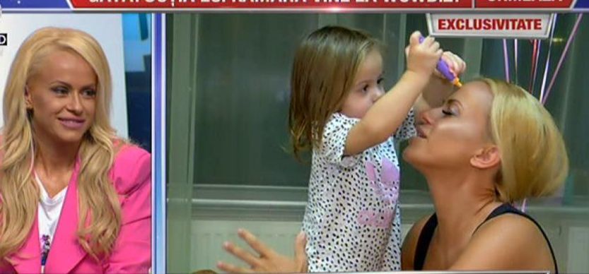 "Vorbind la telefon, m-am intors si am vazut-o ca se dadea pe buze cu stickul de lipici de hartie si avea aceeasi forma ca un ruj. S-a schimbat foarte mult intr-o luna, cat am fost plecata. Face multe lucruri pe care nu le facea inainte. Se duce singura la gunoi si arunca anumite lucruri, te ajuta mai mult.