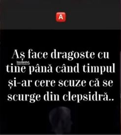 "Aș face dragostei cu tine până când timpul și-ar cere scuze că se scurge din clepsidră...", este mesajul publicat de Andy de la Puterea Dragostei.