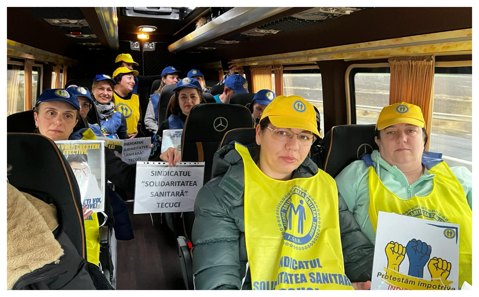 4 din 4 | Imagine cu angajații din sănătate în drum spre protestul din București.
