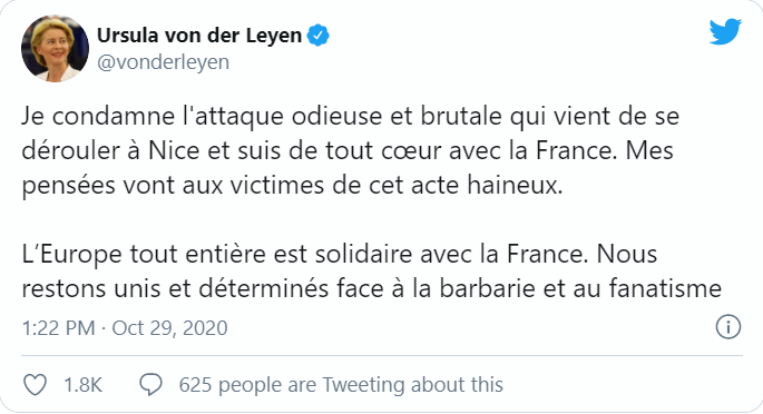 Și preşedinta Comisiei Europene, Ursula von der Leyen a condamnat atacul din Franța
